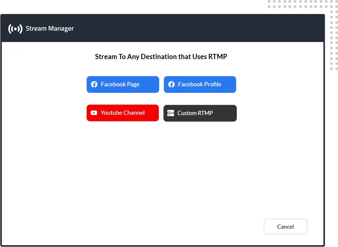 Haz un webinar con un solo clic. Transforma instantáneamente Meetn® en una plataforma de webinars de última generación para convertir leads en clientes. No se requiere licencia adicional ni software extra. Y como se mencionó antes, puedes transmitir a múltiples redes sociales simultáneamente.